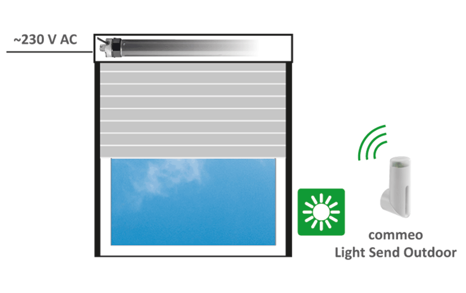 The commeo Light Send Outdoor automatically controls awnings, screens, roller shutters and Venetian blinds in reaction to direct sunlight and optionally at dusk - conveniently and energy-efficiently.