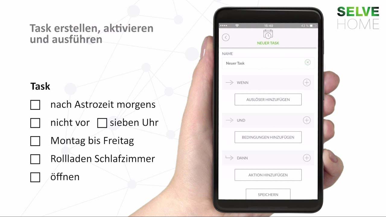 SELVE Home: créer, activer et exécuter une tâche dans le SELVE Home Server 2