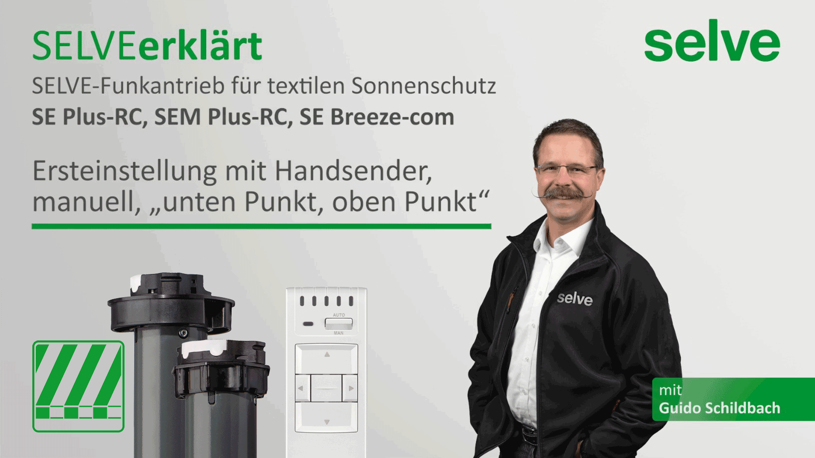Applications intelligentes, paramétrage facile : Suivez nos tutoriels vidéo étape par étape pour monter facilement les moteurs et systèmes radio de SELVE. Vous trouverez ici des vidéos explicatives pour tous nos systèmes de commande, ainsi que pour la plupart des moteurs électroniques et mécaniques.