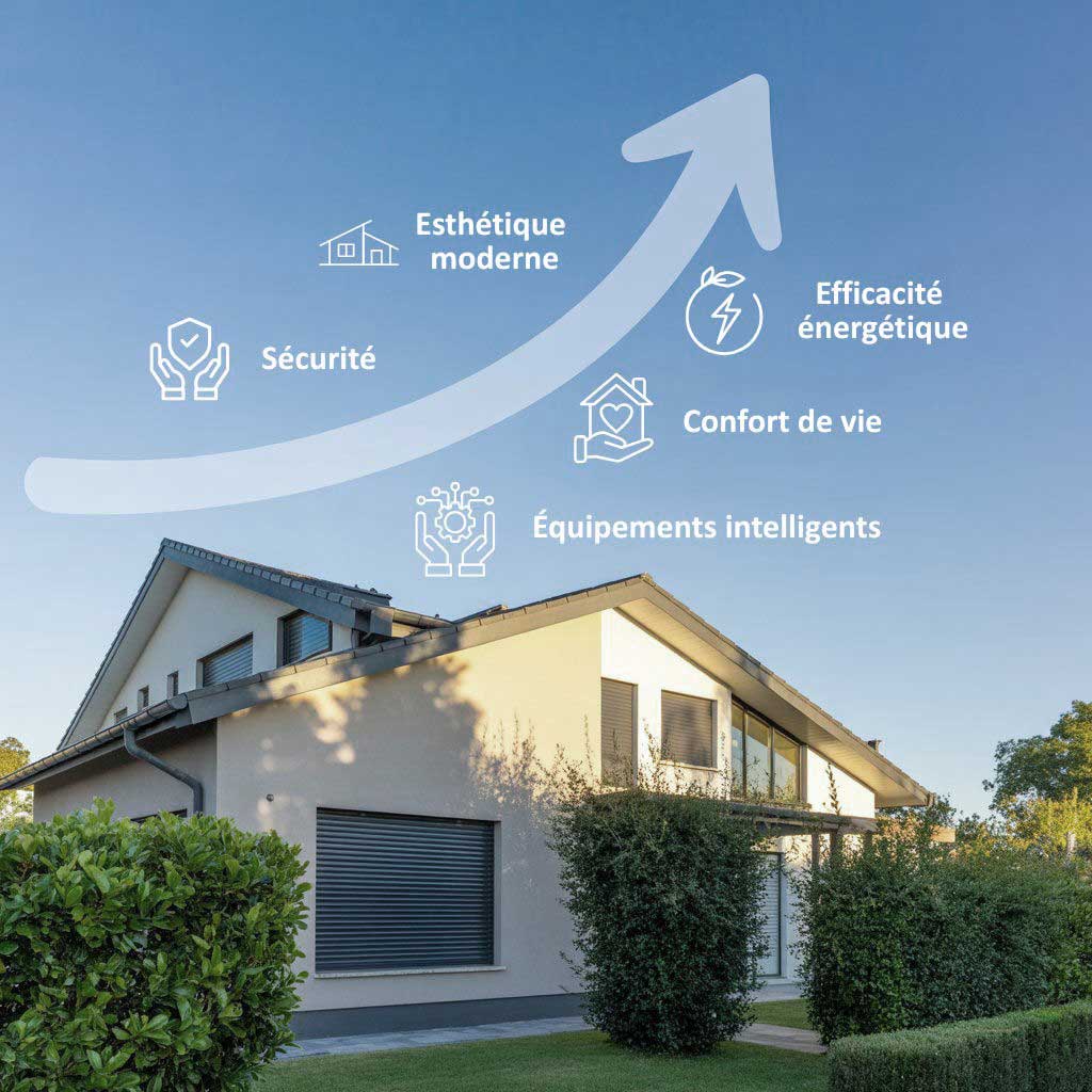 Les interventions les plus efficaces combinent amélioration fonctionnelle et esthétique, comme le remplacement de fenêtres anciennes, l’installation de systèmes de chauffage intelligents ou de protections solaires automatisées.