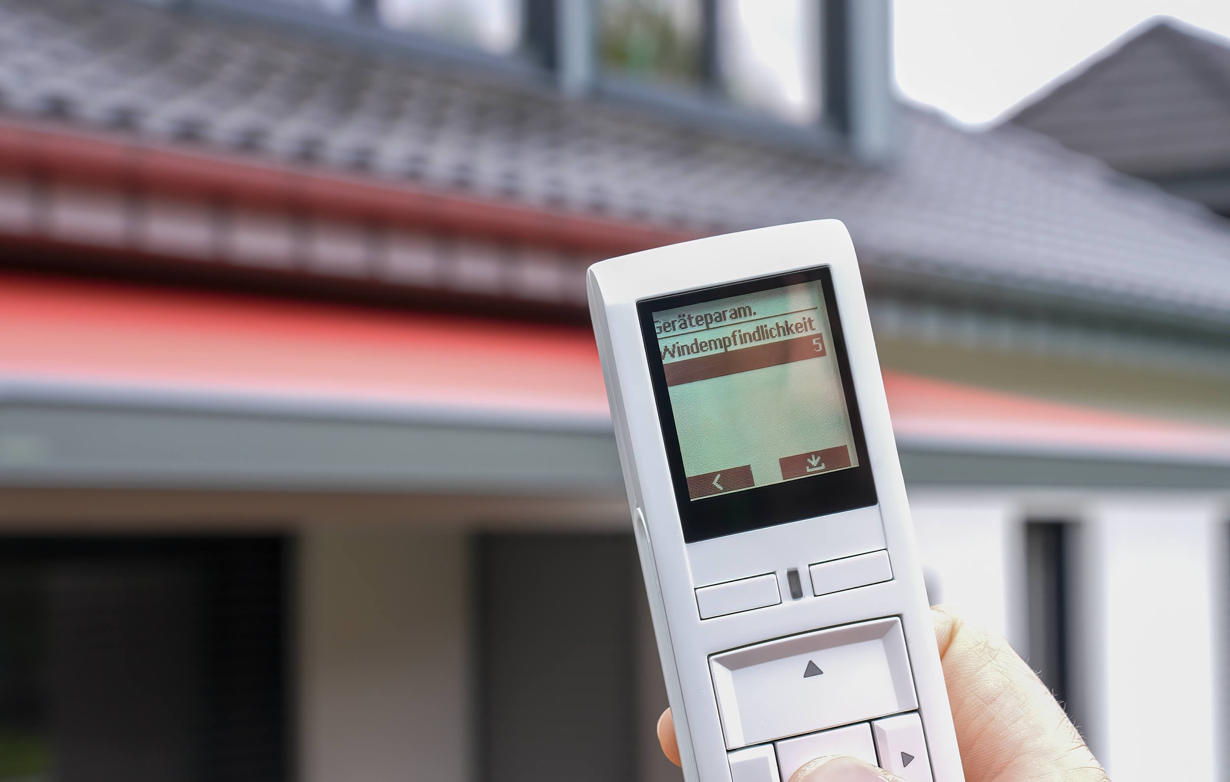 SELVE-Markisenantrieb SE Breeze-com: Einstellen der Windempfindlichkeit per commeo-Handsender