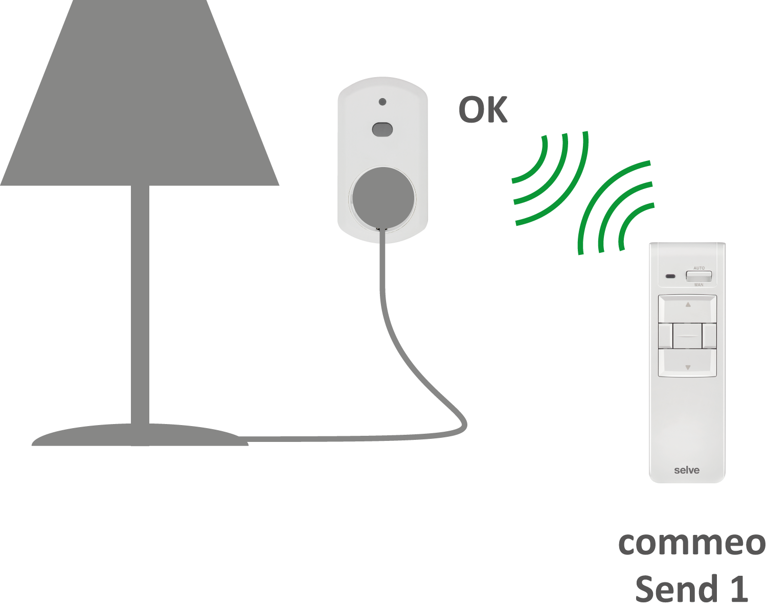 Der Funksteckdosenadapter commeo Adapter Plug dient zum Schalten von elektrischen Geräten mit Netzstecker. Er kann von jedem commeo‑ oder iveo‑Sender angesteuert werden. Das manuelle Einschalten erfolgt über die AUF‑Taste und das Ausschalten über die STOPP‑ oder AB‑Taste eines eingelernten Senders. Der commeo Adapter Plug kann über eingelernte Sender mit Zeitschaltuhren, z.B. commeo Multi Send, automatisch ein‑ und ausgeschaltet werden.