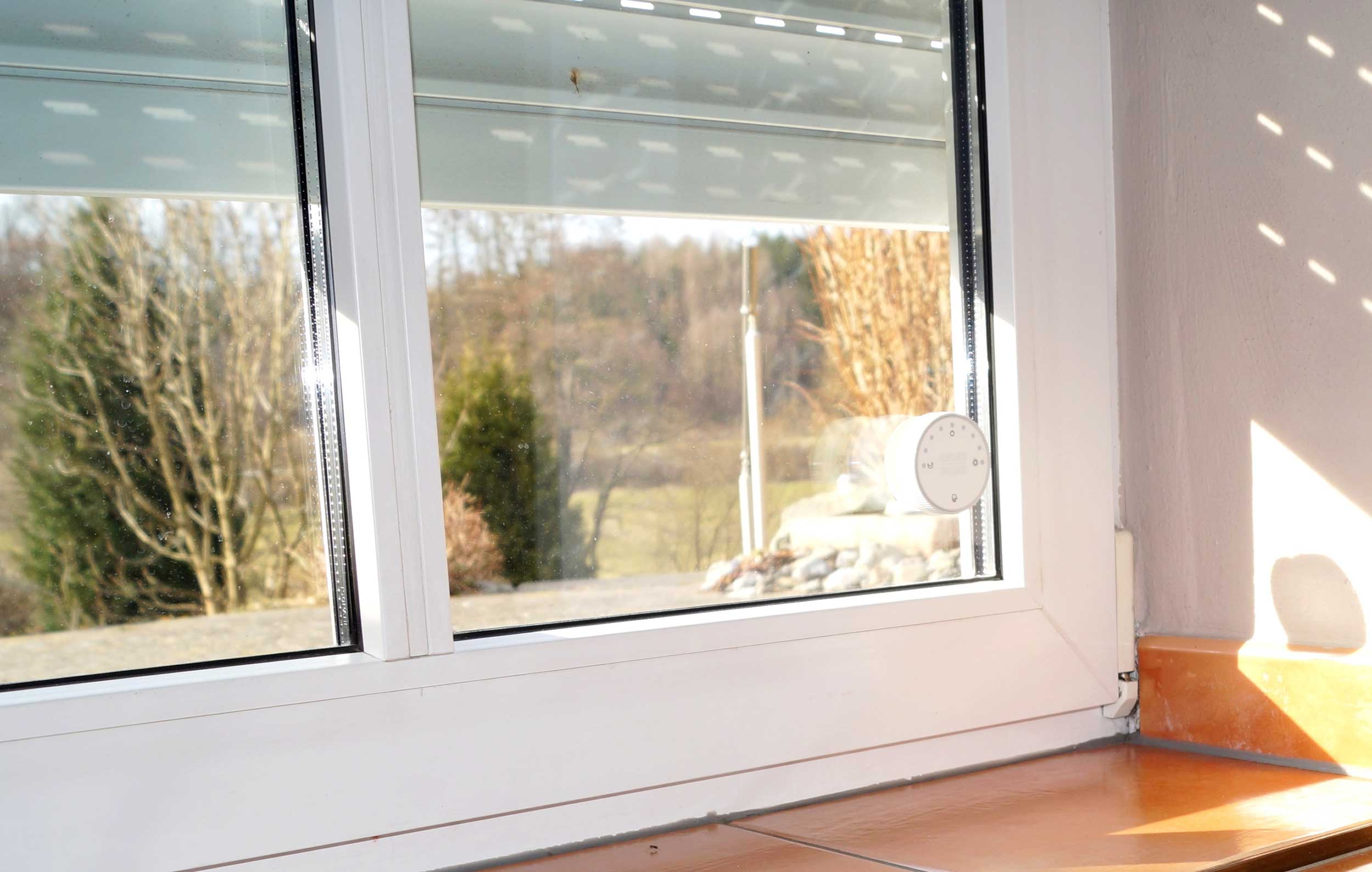 Erschütterungen der Fensterscheibe können über den integrierten Glasbruchsensor erkannt werden.