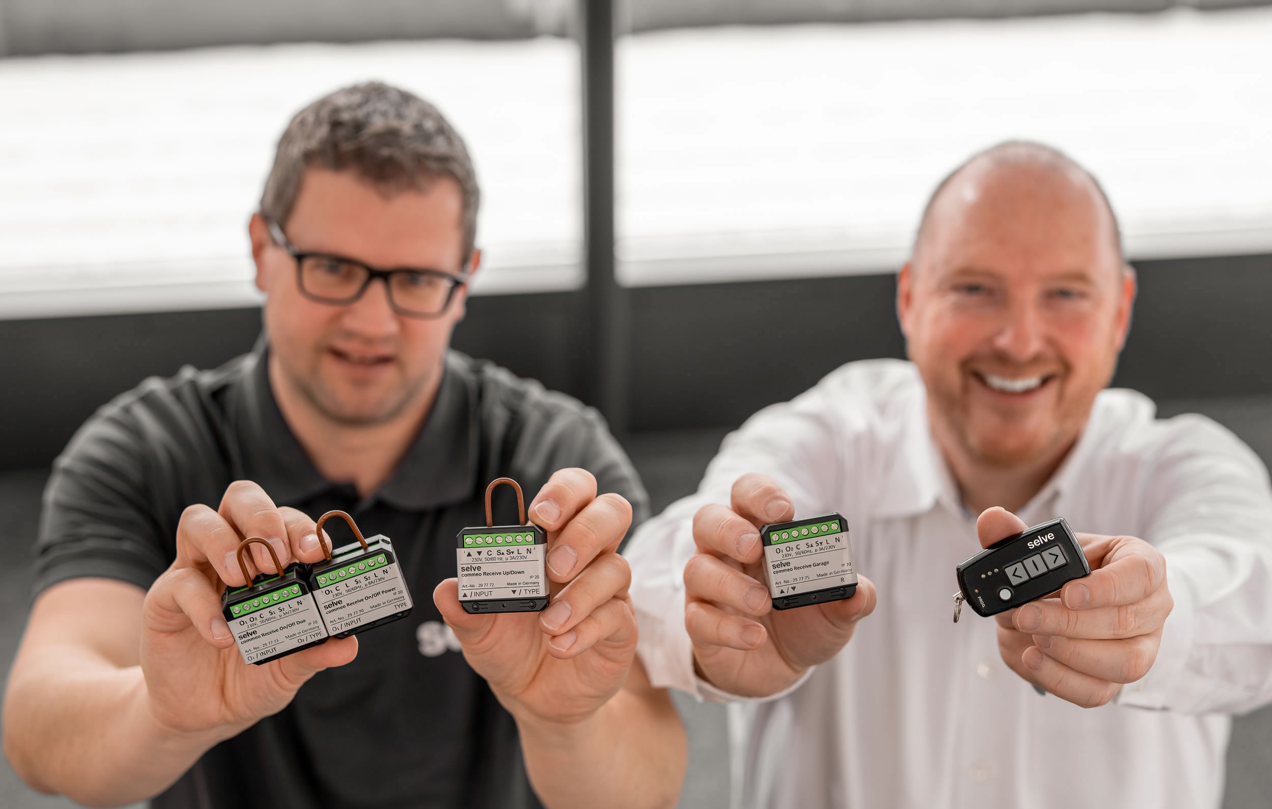 Komplettiert wird das Programm durch den neuen „commeo Receive Garage“, der speziell für die komfortable Ansteuerung gängiger Garagentorantriebe konzipiert wurde. Dank des Empfängers können Garagentore ganz einfach per Knopfdruck geöffnet und geschlossen werden. SELVE hat passend dazu einen kompakten commeo-Sender für den Schlüsselbund entwickelt. Der handliche „commeo Key Send 3“ steuert einen Garagentorantrieb durch Impulse – für Auf, Stopp sowie Ab, Stopp. „Zusätzlich kann der kleine, praktische Sender auch für Ansteuerung aller SELVE-Funkantriebe verwendet werden, zum Beispiel als Zentralsteuerung beim Verlassen des Hauses“, so Stefan Backenecker zu den vielfältigen Einsatzmöglichkeiten.