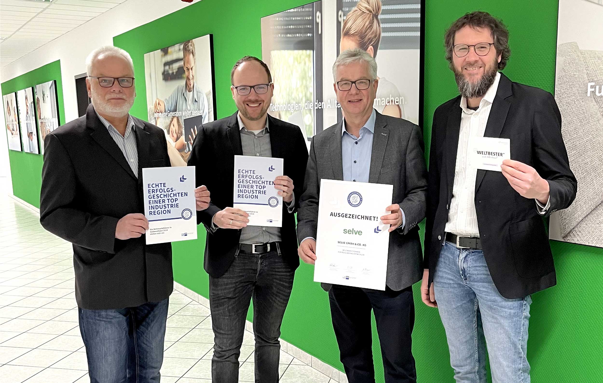 Mit der Kampagne „Weltmarktführer in Südwestfalen 2024“ würdigt die SIHK besondere Erfolgsgeschichten in einer der stärksten Industrieregionen Deutschlands. Auch dieses Mal ist SELVE unter den ausgezeichneten Champions vertreten: Ludger Stracke und Marketingleiter Alexander Vogt nahmen jüngst am Lüdenscheider Hauptsitz die Urkunde von Vertretern der Südwestfälischen Industrie- und Handelskammer entgegen.