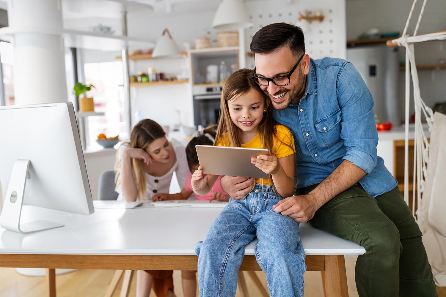 Familie Krüger steuert zukünftig die Rollläden kinderleicht auch per Sprachbefehl sowie mit den bereits verbauten Rauchmeldern anderer Hersteller und über die Temperatursteuerung in Amazon Echo. Alles zentral miteinander verbunden – ganz ohne App-Chaos!