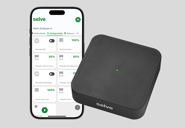 Rollläden, Licht und Sensoren verschiedener Hersteller – alles in einer App. Der SELVE Home Server 3 macht's möglich.