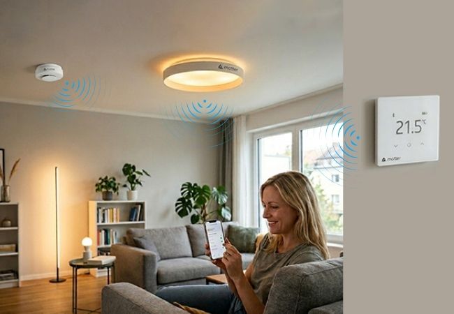Funksender, Lampen, Sensoren und HeizungstThermostate mit Matter-Support können jederzeit ergänzt und direkt mit den im SELVE Home Server 3 eingebundenen Geräten verknüpft werden.